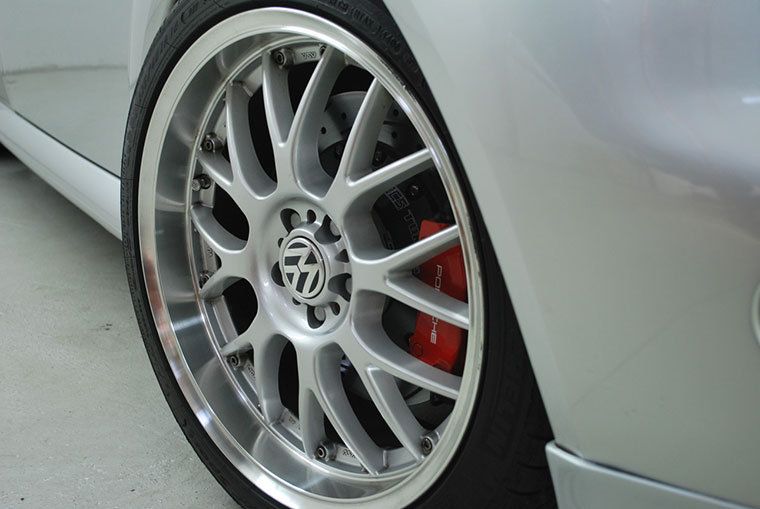 12.1" two-piece floating rear rotors with OEM GTI 337 calipers. Hawk HPS pads