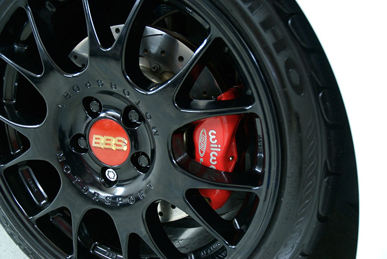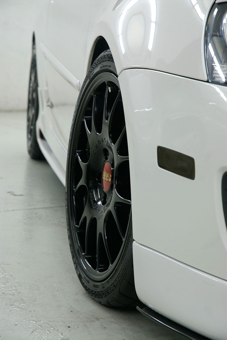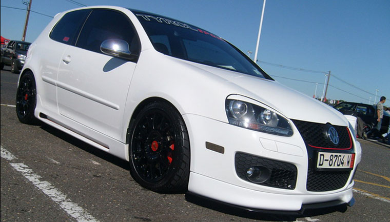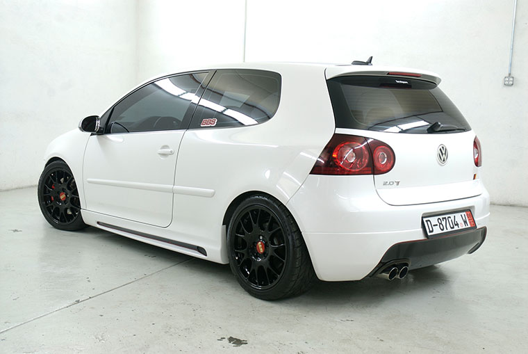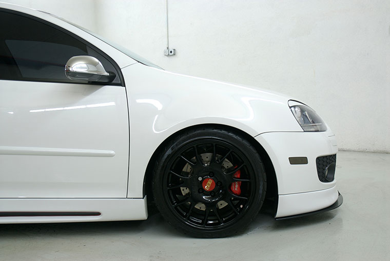 BBS CH 18x9, powder coated high gloss black, BBS red and gold center caps, VW "GTI" valve covers with Kumho MX 225/40-18 tires